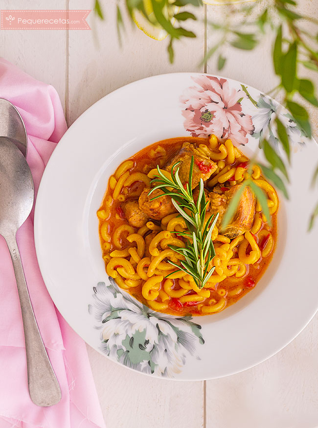 En esta receta con fideos tiene mucha importancia utilizar un caldo de pollo casero. También es importante realizar un buen sofrito para que aporte mucho sabor al conjunto.