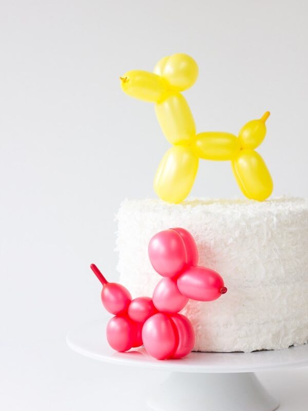 Una sencilla tarta cubierta de nata o buttercream puede convertirse en algo súper original, agregando unos globos: El clásico perrito es un adorno especial y original y muy sencillo de hacer. En Pequeocio podéis ver cómo hacer un perrito con globos.