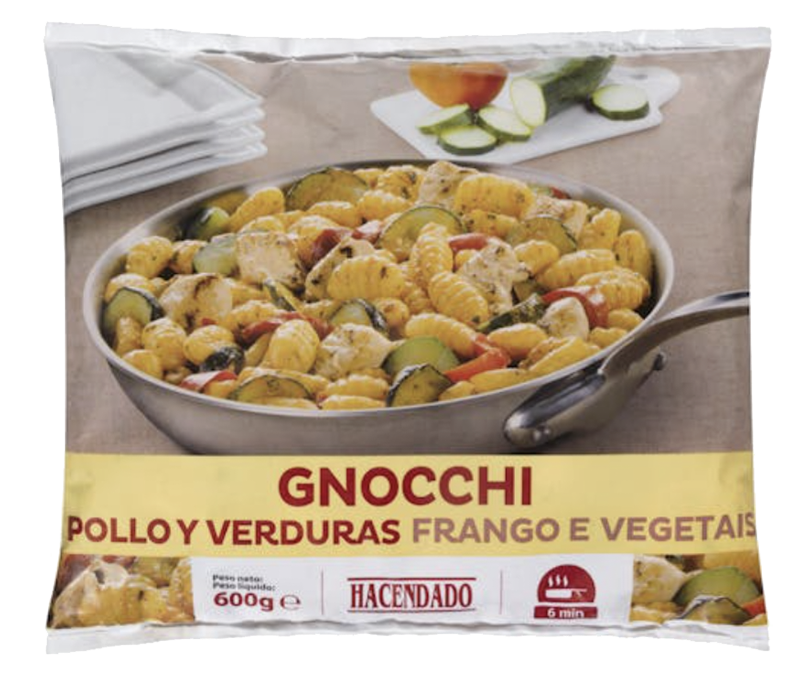 - 1 paquete de gnocchi de pollo y verduras de Mercadona