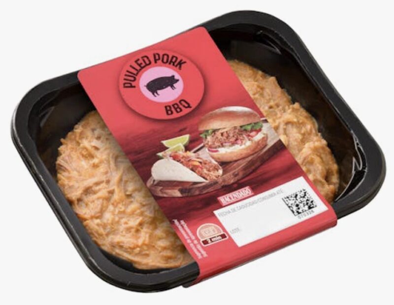Se trata del Pulled Pork Hacendado, una carne de cerdo deshilachada en salsa barbacoa inspirada en la cocina estadounidense. Este producto destaca por su practicidad, ya que viene listo para calentar en el microondas y servir. Su precio es de 2,50€ por una bandeja de 200 gramos, lo que lo convierte en una opción asequible para cenas improvisadas.