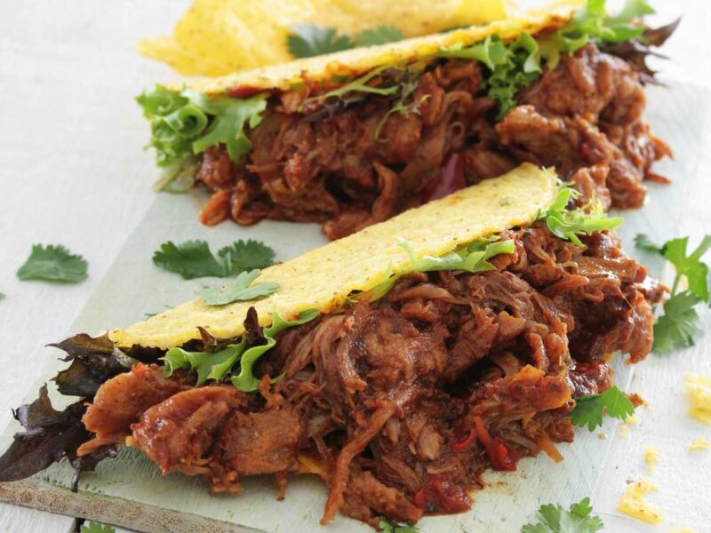 Rellena tortillas de maíz con el pulled pork, añade cebolla morada, cilantro fresco y un chorrito de jugo de limón. Una fusión perfecta entre la cocina estadounidense y mexicana.