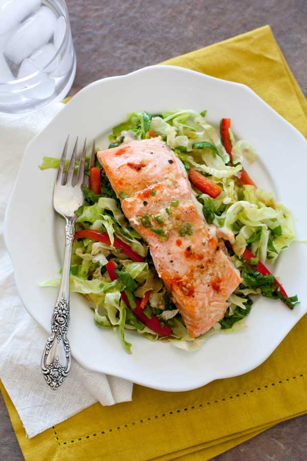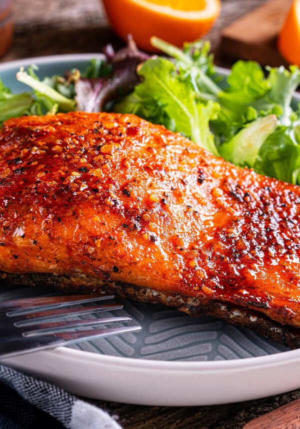 Salmón marinado al horno con ajo y jengibre