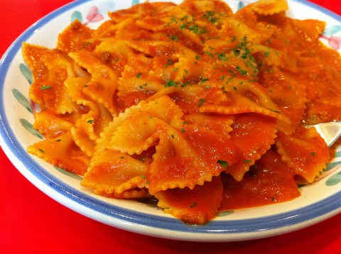 - La pasta en sí, es muy baja en grasa, aunque las salsas con la que la acompañamos no suelen serlo. Es buena idea descartar bacon, chorizo, mantequilla, crema de leche, nata y quesos grasos, o no ofrecerlos muy a menudo, más si el niño tiene sobrepeso u obesidad. En cambio podemos hacer salsas de tomate casera, y si lo que queréis es obtener una salsa carbonara podéis cambiar la crema de leche o nata por crema de soja, os dará el mismo toque pero sin grasa.