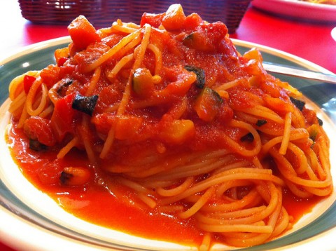 - Salsa de tomate, Podemos acompañar el plato de espaguetis con tomate con una ensalada de atún o palitos de cangrejo o podemos agregarlos a la salsa de tomate.