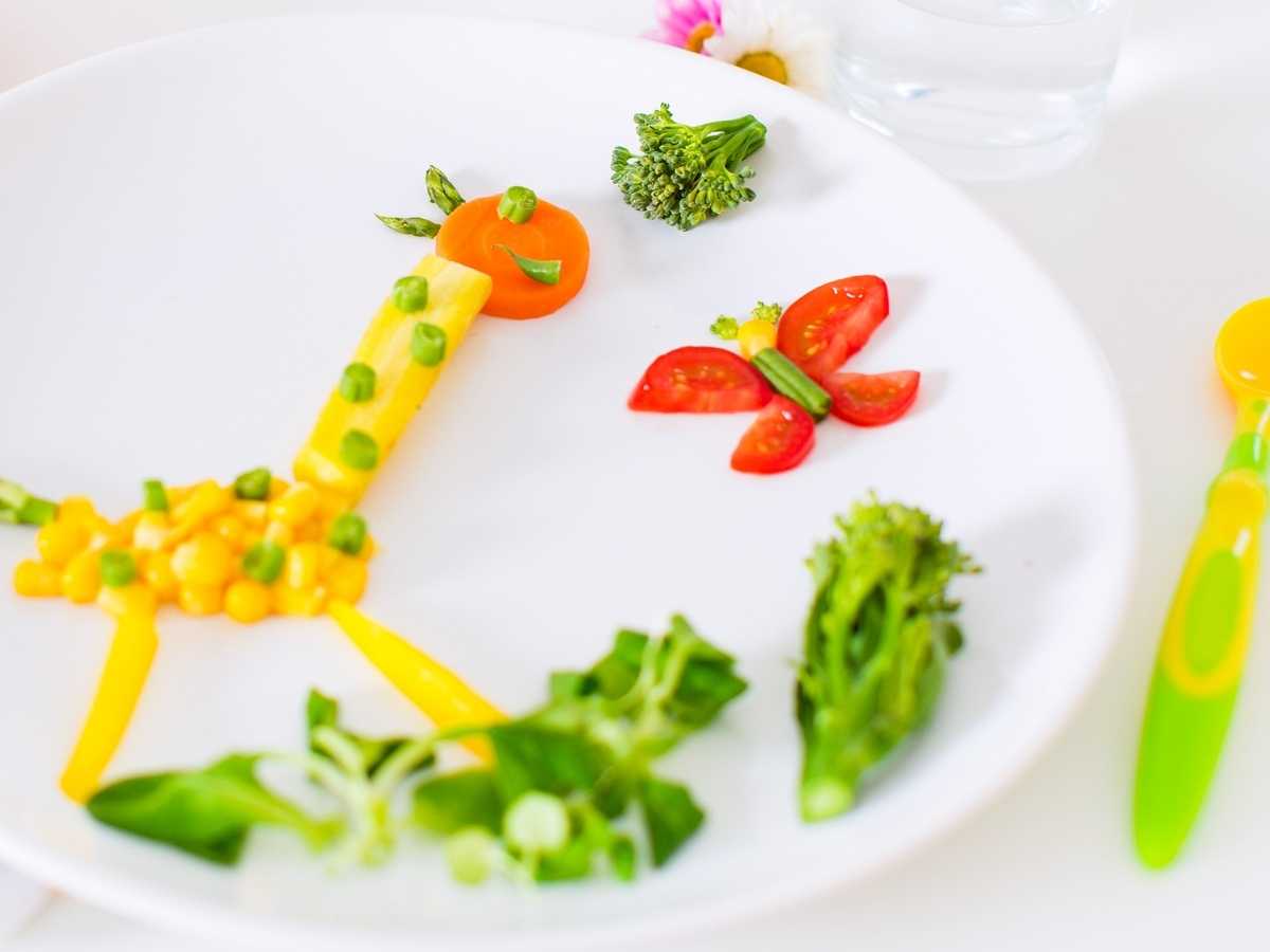 - Comida: Tiras de calabacín al horno, trozos de pollo al vapor y bastones de boniato.