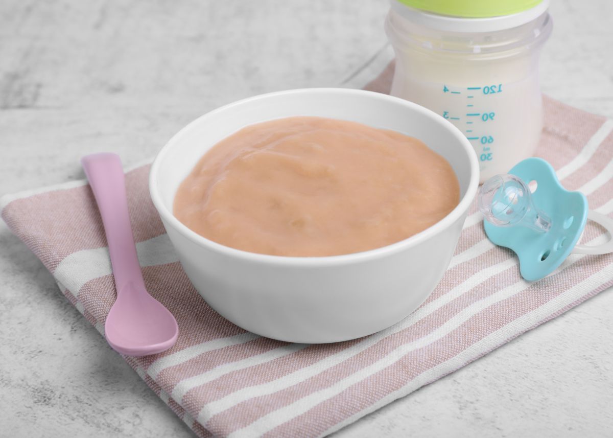 - A continuación se tritura en 150ml de leche materna o de fórmula + 1 cucharada de postre de aceite de oliva + cereales (más o menos cacitos según le guste al niño más o menos espeso).