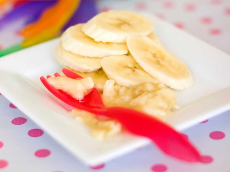 Para los bebés que prefieren texturas más blandas o si quieres variar la presentación, puedes machacar el plátano con un tenedor.