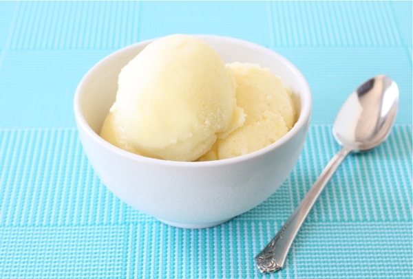 Cortamos la piña en trozos y los distribuimos sobre una fuente con papel para hornear, sin superponer los trozos. Congelamos por 1 o 2 horas (si la dejáis más tiempo, al quitarla del congelador dejadla a temperatura ambiente por unos 10 minutos), licuamos en la licuadora o robot de cocina por algunos minutos hasta obtener una mezcla cremosa, servimos inmediatamente o volvemos a llevar al congelador para que endurezca un poco (aprox. 30 minutos). También la podéis poner en moldes para hacer helados caseros.
