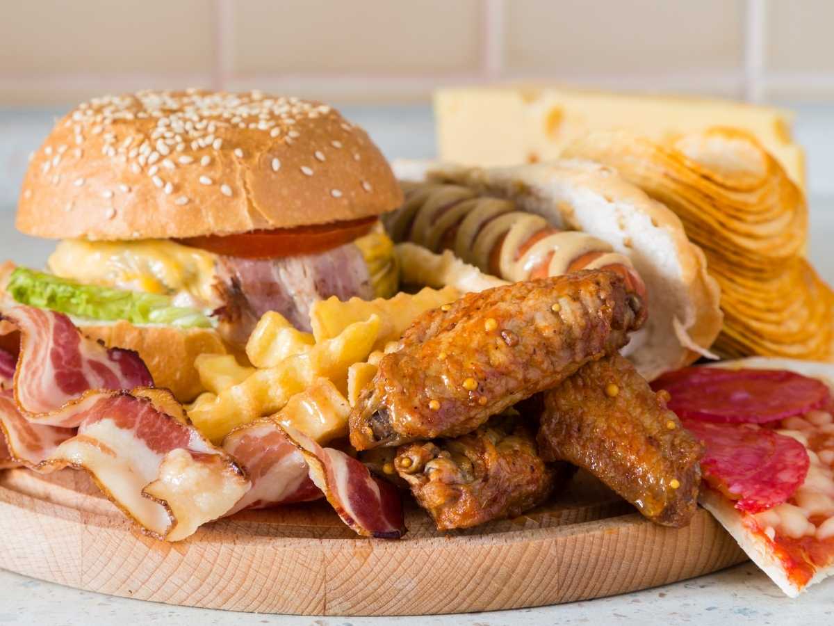 Lácteos enteros, carne roja, embutidos grasos, paté y foie, snacks, bollería industrial, comida precocinada.