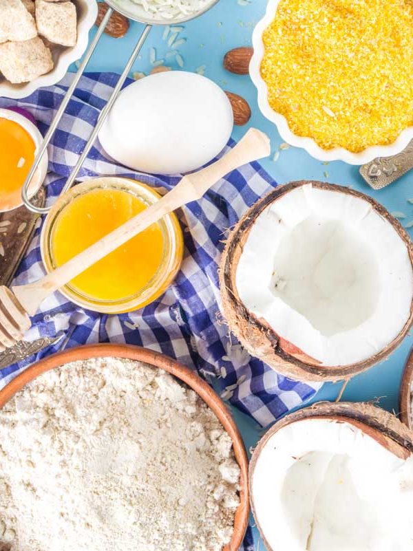 - ½ taza de harina de soja más 1/2 de taza de fécula de patata.
