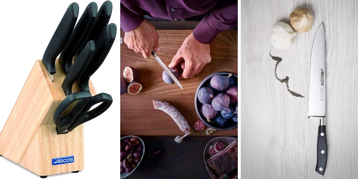 Para empezar no hace falta que te hagas con un juego profesional  de la marca Wüsthof, o estos cuchillos de Kai, de nivel profesional, pero sí es importante tener un buen juego de cuchillos de acero inoxidable como los de la marca española ARCOS, de Albacete, reconocida a nivel mundial, que, aún siendo de su serie básica, son cuchillos de acero inoxidable NITRUM, una fórmula exclusiva de esta marca, de acero al nitrógeno que proporciona más dureza, mayor poder de corte y mejora de la durabilidad del filo.