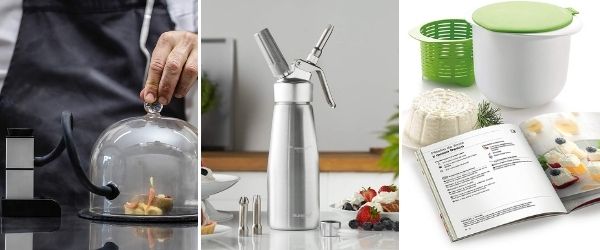 Para ellos nos ha parecido muy interesante este Kit de esferificaciones para comenzar a practicar esferificaciones de cocina molecular. También divertido este kit de Lékué para hacer queso fresco.