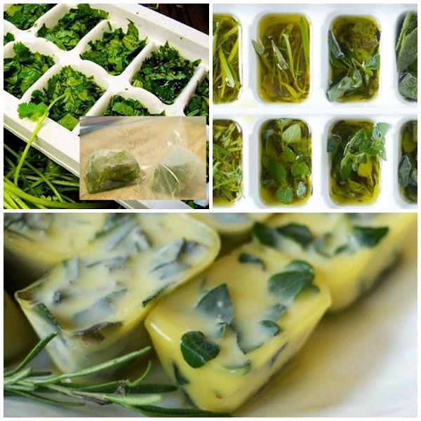 - Congelar hierbas frescas en aceite: Pica las hierbas y colócalas en bandejas de cubitos de hielo con aceite de oliva.