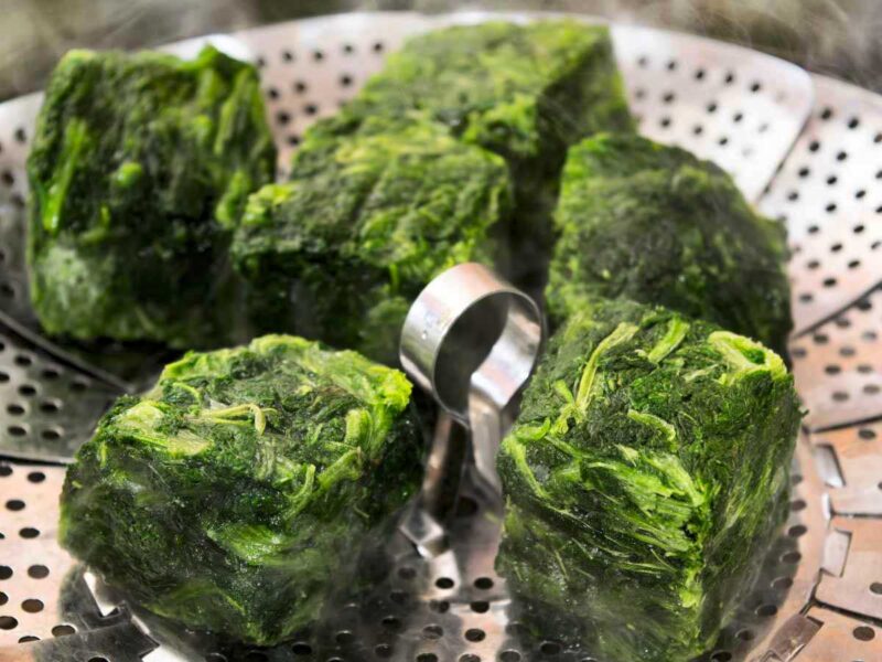 Si prefieres cocinar las espinacas congeladas al vapor, también es posible hacerlo con un par de ajustes. Este método es ideal para conservar mejor los nutrientes y evitar que absorban demasiada agua, lo que puede suceder al hervirlas.