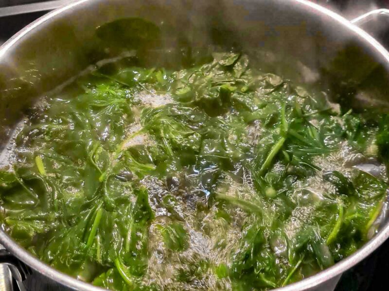 - Cocción rápida: Introduce las espinacas en el agua hirviendo y deja cocinar durante 30 segundos a 1 minuto. No deben estar demasiado tiempo, ya que podrían perder nutrientes y volverse demasiado blandas.