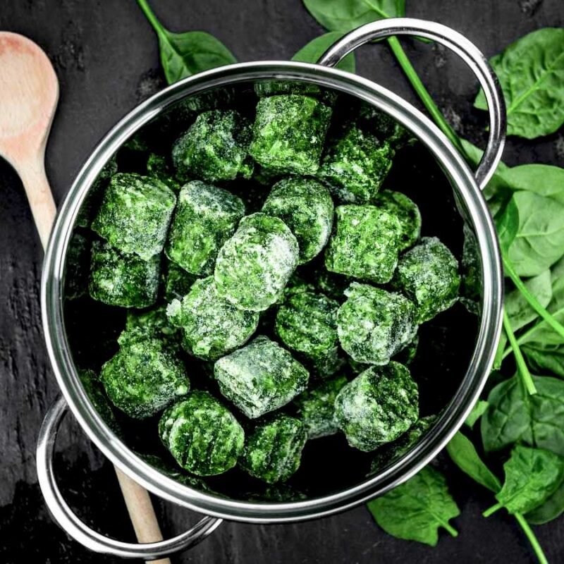 Las espinacas congeladas son una excelente opción porque ya vienen limpias y listas para cocinar. Para cocerlas correctamente: