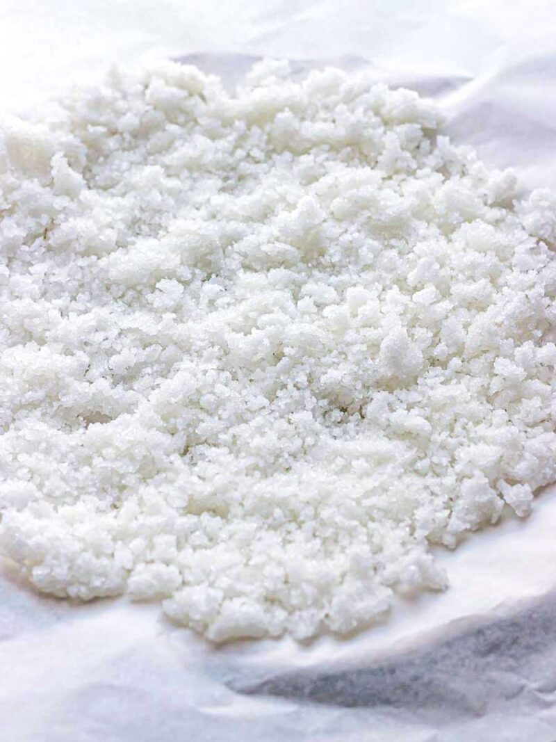 Una vez que el azúcar esté completamente seco, rompe los trozos más grandes con las manos o con una cuchara. Y listo, ¡ya tienes tu azúcar perlado casero!