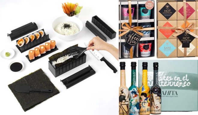 Para aquellos que aman la cocina japonesa y se deleitan preparando sushi casero, dos regalos que seguro apreciarán muchísimo: la Vajilla para sushi elegante y sobria, y el Juego de moldes y herramientas para hacer sushi. Si lo que más aman es el picante y la comida mexicana, seguro que este Set de salsas picantes será un regalo muy apreciado.