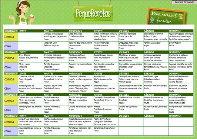 Os recordamos que tenéis abajo un enlace con una plantilla en blanco para que vosotros mismos os preparéis vuestro propio menú mensual, porque, aunque intentamos que los menús sean lo más sencillos y adaptables, sin duda cada familia es un mundo con sus propias necesidades y gustos. ¡Esperamos que os venga bien nuestro menú y que nos llene de energía para recibir la primavera con buen humor!