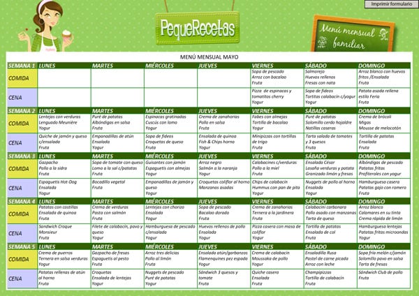 Cómo imprimir el menú semanal