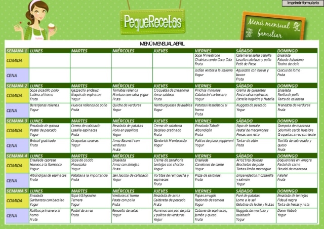 Cómo imprimir el menú semanal