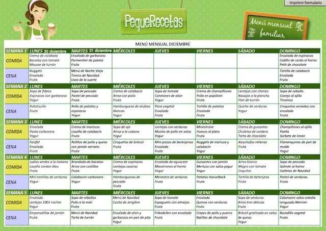 Cómo imprimir el menú semanal