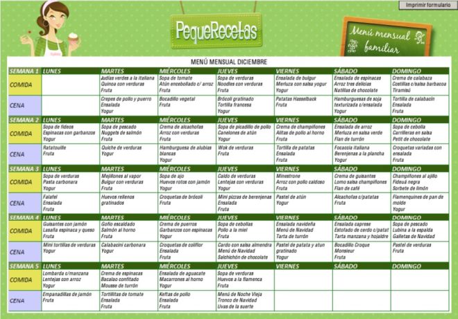 Cómo imprimir el menú semanal