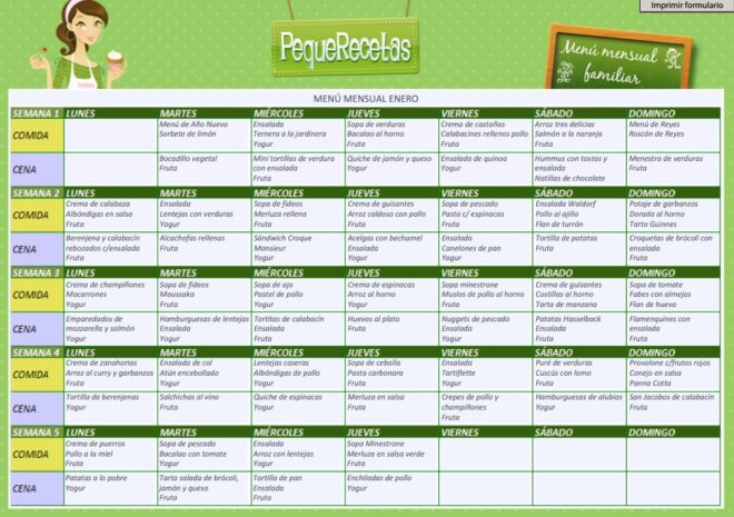 Cómo imprimir el menú semanal