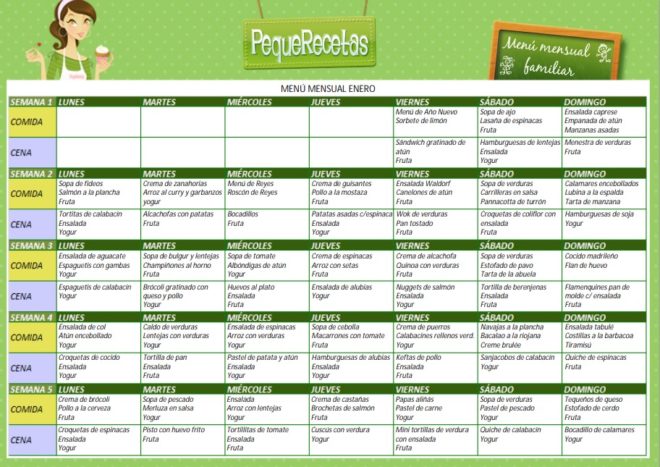 Probablemente podréis adaptar muchos de los platos que os proponemos a lo que tengáis en la despensa, ya que, como siempre son platos caseros y fáciles, pero no obstante os recomendamos también descargar nuestra plantilla de menú semanal en blanco aquí y así podréis adaptar las comidas a vuestras necesidades, ayudándoos con nuestras ideas y todas las sugerencias que os daremos estos días desde nuestras redes sociales: Facebook, Pinterest e Instagram.