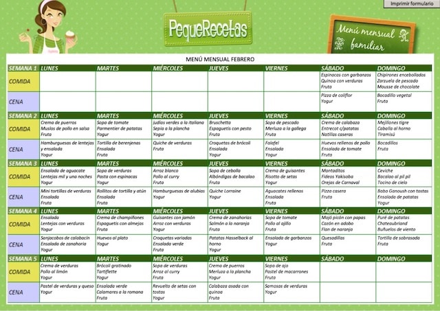 El invierno no ha acabado de llegar que ya se está yendo, ¡o al menos eso dice el calendario! Porque estamos en febrero y como cada mes os traemos nuestro menú semanal para organizar las comidas y las cenas ahorrando tiempo, dinero y comiendo de manera equilibrada.