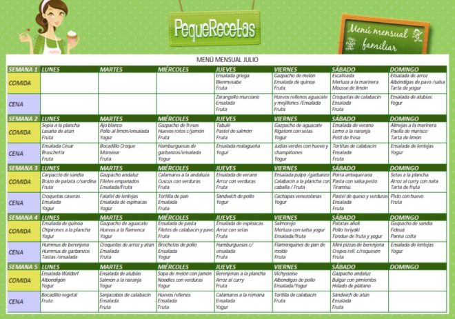 Probablemente podréis adaptar muchos de los platos que os proponemos a lo que tengáis en la despensa, ya que, como siempre son platos caseros y fáciles, pero no obstante os recomendamos también descargar nuestra plantilla de menú semanal en blanco aquí y así podréis adaptar las comidas a vuestras necesidades, ayudándoos con nuestras ideas y todas las sugerencias que os daremos estos días desde nuestras redes sociales: Facebook, Pinterest e Instagram.