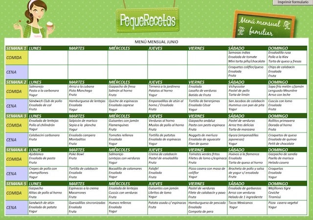Cómo imprimir el menú semanal