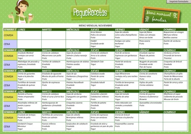 Podéis descargar el menú en los dos enlaces de más abajo. El primero es para móviles, y el segundo en caso de que estéis en un ordenador o portátil y queráis acceder directamente a las recetas haciendo clic sobre ellas.