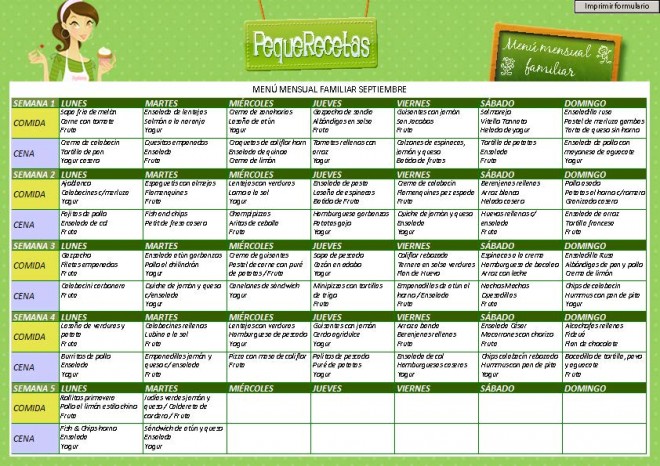 Para imprimir el formulario solo tenéis que pinchar en la imagen de arriba y se descargará un pdf que os permitirá visualizar o imprimir. También os recordamos que tenéis una plantilla en blanco que os permitirá crear vuestro propio menú, adaptándolo a los gustos y necesidades de vuestra familia.