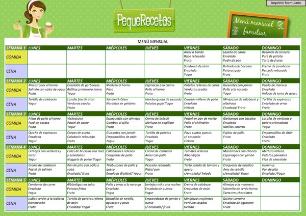 Y en esta tarea intentamos ayudaros desde hace ya mucho tiempo, proponiendo un menú semanal para cada día del mes, que, por supuesto no es para que lo sigáis al pie de la letra, ya que tendréis que adaptarlo a vuestra familia y rutinas.