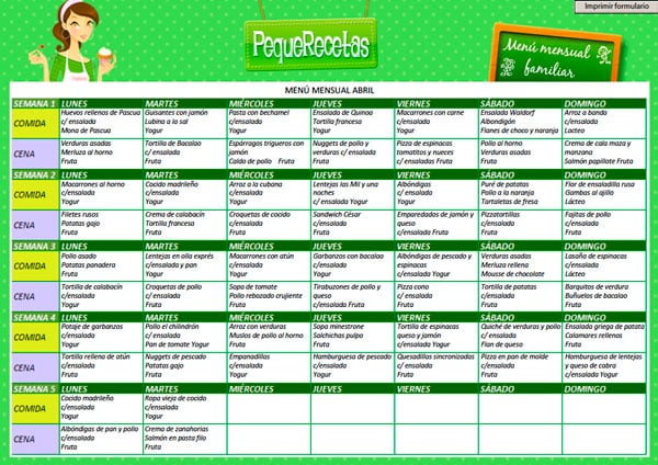 - Podéis descargar la plantilla de menú mensual vacía aquí