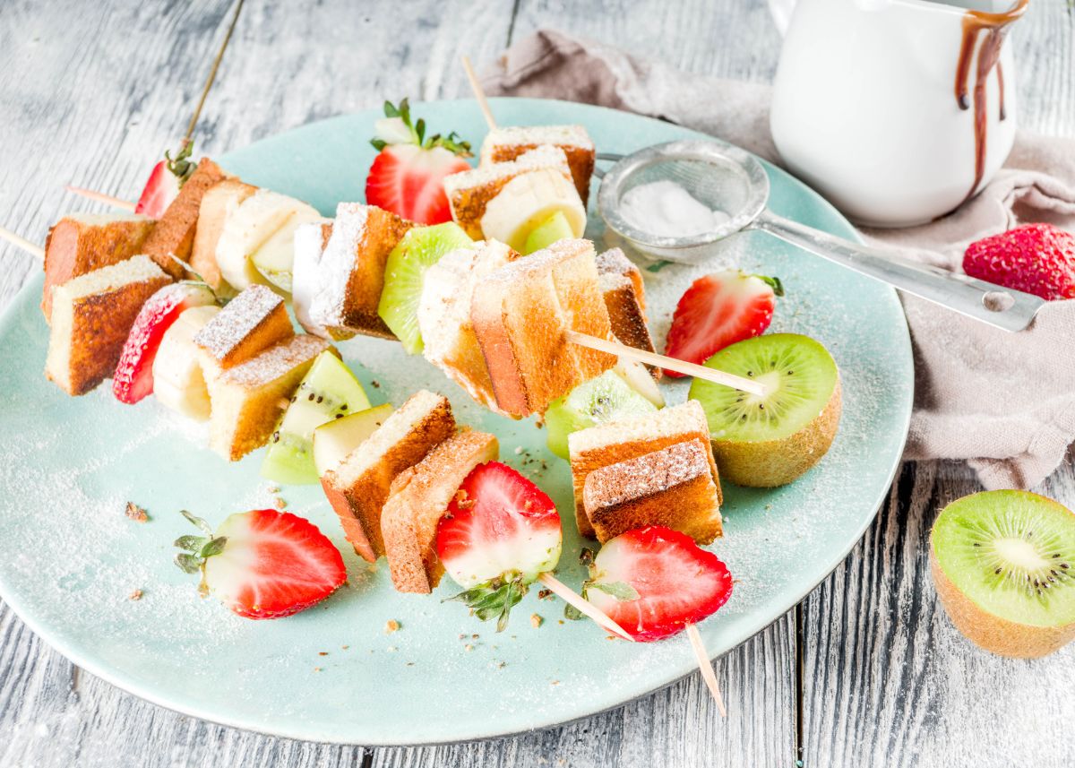 Brochetas de frutas para el desayuno