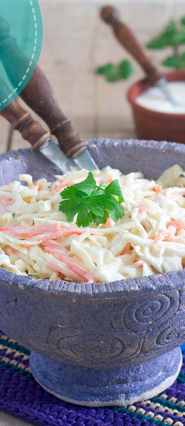 La ensalada de col o coleslaw se ha hecho famosa por esas miniensaladas que suelen ponerte al lado de las hamburguesas en los restaurantes americanos ¡y está deliciosa! Otra deliciosa alternativa para una cena ligera.