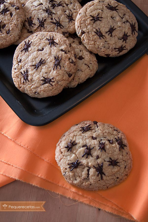 Unas cookies de chocolate se transforman en unas aterradoras galletas llenas de araña con un pequeño truquillo, os dejamos la receta aquí: galletas de araña