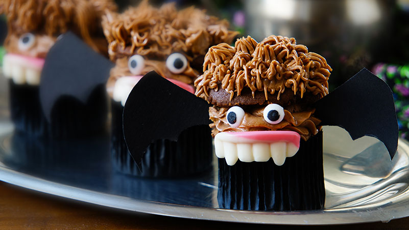 Mira qué idea más original para una fiesta de Halloween. Estos cupcakes murciélago serán un éxito total, y son muy fáciles de hacer.