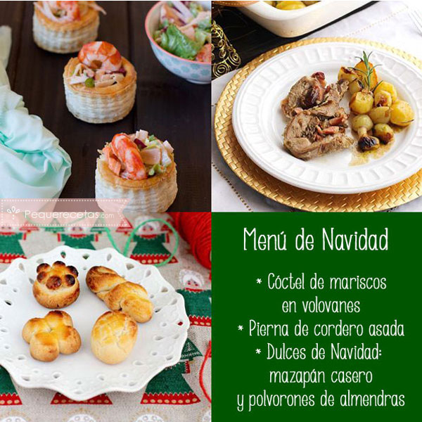 Ver las recetas de cóctel de marisco en volovanes, pierna de cordero al horno, mazapán casero y polvorones de almendras.