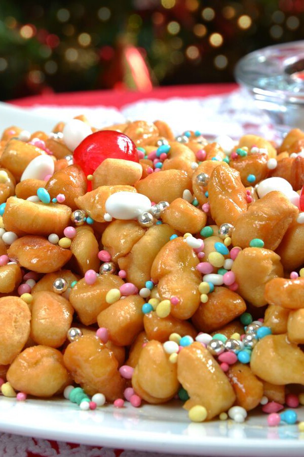 - Y como postre puedes preparar unas galletas de Navidad, o si te animas a probarlo, el struffoli napolitano, hecho con bolitas de masa fritas rebozadas con miel y espolvoreadas con fruta escarchada y sprinkles, serán un sueño para los niños.