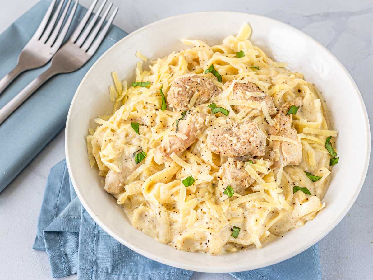 En 1914, el dueño del restaurante romano Alfredo alla Scrofa, Alfredo di Lelio, le logró imprimir su nombre al plato al servirlo de una forma muy vistosa y espectacular, haciendo alusión a una gran ópera. Actualmente en Italia la preparación se sigue conociendo como Fettuccine al burro, llamándose “Alfredo” especialmente en Estados Unidos.