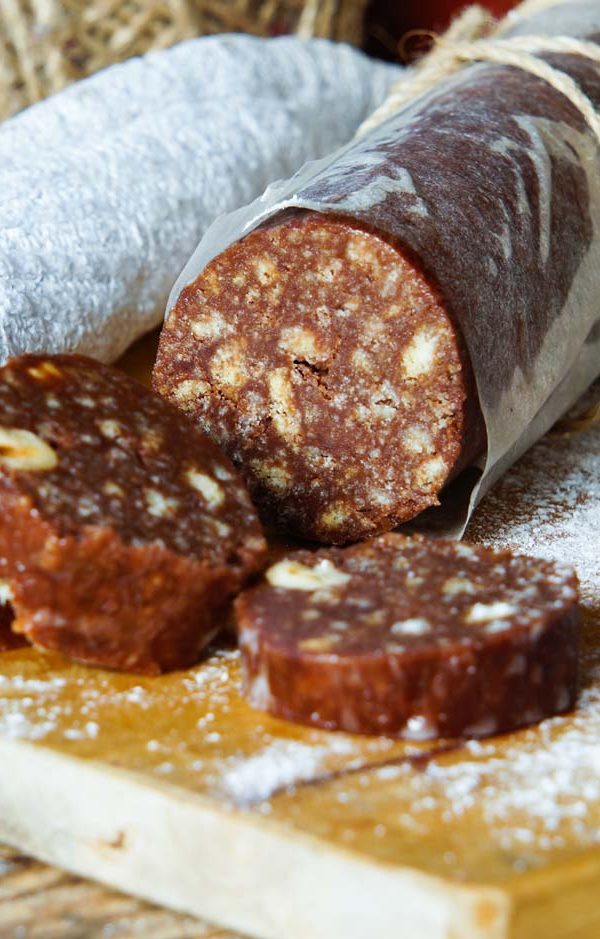 Este postre italiano es muy popular en Italia, Uruguay y Portugal, donde se consume todo el año pero especialmente en Navidad ¿te imaginas la cara de tus invitados cuando les pongas un salchichón de chocolate en los postres? ¡Mira la receta porque es muy fácil de hacer y el resultado es muy espectacular!