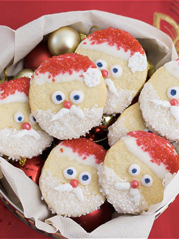 Otra idea divertida para hacer galletas navideñas son estas galletas de Papá Noel ¡a los niños les encantarán!