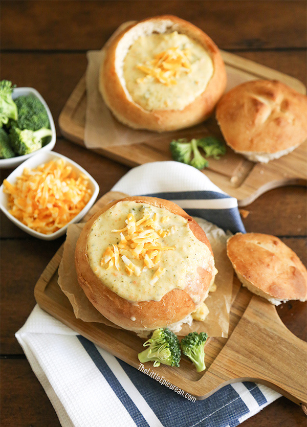 Las cazuelas de pan resultan perfectas para servir platos de cuchara, como por ejemplo las sopas y cremas. En la imagen vemos una crema de brócoli con el agregado de queso Cheddar rallado, pero cualquier sopa quedará muy bien, ya hemos visto una sopa de tomate dentro de una cazuela en la imagen principal (Fuente: Peta).