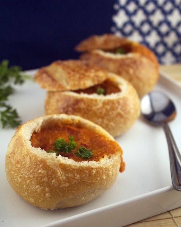 Como os decía antes, podéis comprar las hogazas de pan, o hacerlo vosotros mismos. Si queréis hacer un pan realmente original, con forma de olla o cazuela, podéis seguir nuestra receta paso a paso para hacer una cazuela de pan para presentar los platos. Lleva un poquito de trabajo, ¡pero vaya pinta!