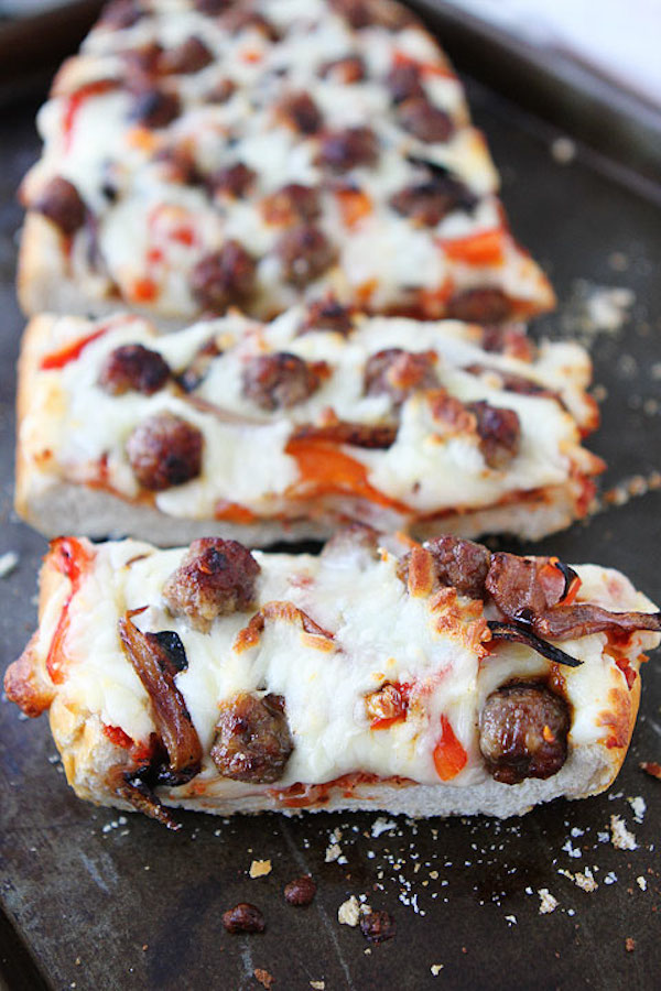 La baguette o la hogaza de pan pueden ser la base perfecta para experimentar con pizzas de diferentes sabores. Simplemente las cortamos longitudinalmente, ponemos salsa, queso mozzarella, y los ingredientes que más nos gusten (longaniza, setas, verduras, patatas, etc.) Horneamos a 200° hasta que el queso se derrita ¡y a disfrutar!