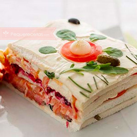Este pastel es casi como un sándwich en tamaño gigante. Si alternas pan de molde con diferentes ingredientes como jamón york, mayonesa, huevo, lechuga y tomate, por ejemplo, tendrás una comida rapidísima y ¡exquisita!