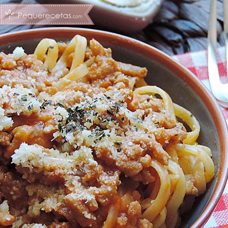 En casa, las recetas de espaguetis nos gustan siempre ¡con cualquier salsa! Cuando mi peque está en una de sus fases difíciles para comer, sé que debo hacer espaguetis porque los come súper bien y le puedo añadir por ejemplo verduras en la salsa para aprovechar.